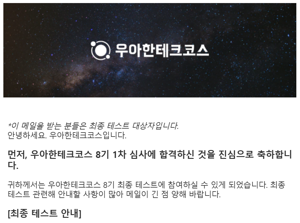 우아한 테크코스 8기 1차 합격했다.