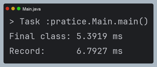 그래서 실험 결과 FinalClass가 Record보다 빠른 것이다.